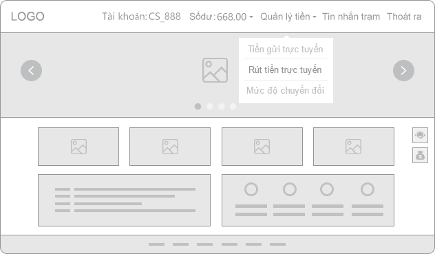 01Sau khi đăng nhập thành công vào trang web, nhấp "Quản lý ví tiền" ở bên góc phải của trang web > Rút tiền trực tuyến.
