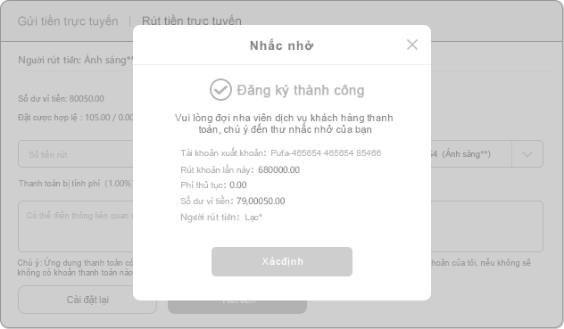 03Xác nhận lời nhắc, nhấp "Xác nhận" là đã hoàn tất thanh toán.